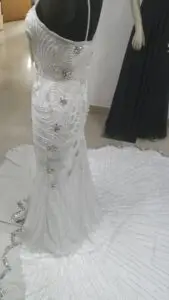 This is a Wedding Gown which has been Hand Embroidered and Machine Hand Embroidered. This gown is with deep open back. We are Manufacturing Bridal Gowns for Designers & ブティック.